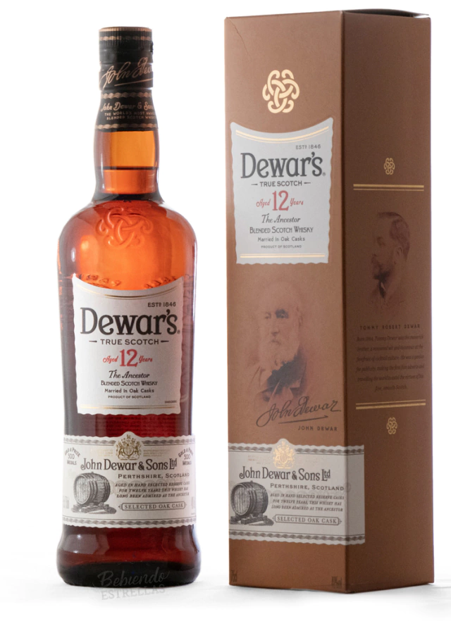 Dewar’s 12 años es sometido a un proceso exclusivo de doble envejecimiento, que consiste en volver a colocar el whisky de nuevo en las cubetas después de la maduración inicial y mezcla. De esta manera se envejece dos veces, consiguiéndose una mezcla más suave, un sabor más completo y un acabado más duradero.De color oro, se perciben aromas afrutados mezclando miel, pasas, corteza de naranja, manzana acaramelada con fundido de mantequilla, caramelo, vainilla y un toque de brezo escocés. Posee un rico y dulce sabor a fruta, con buena longitud y peso, dando paso a una sensación cálida y bien equilibrada en la boca con miel, un toque de roble y cítricos frescos. El acabado es suave y duradero.